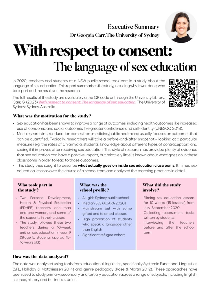 My research is in functional linguistics, educational linguistics and health communication. In particular, my expertise is in discourse analysis, evaluative language and corpus linguistics, with a focus on sex education, health and media. You can find a full list of my publications here.